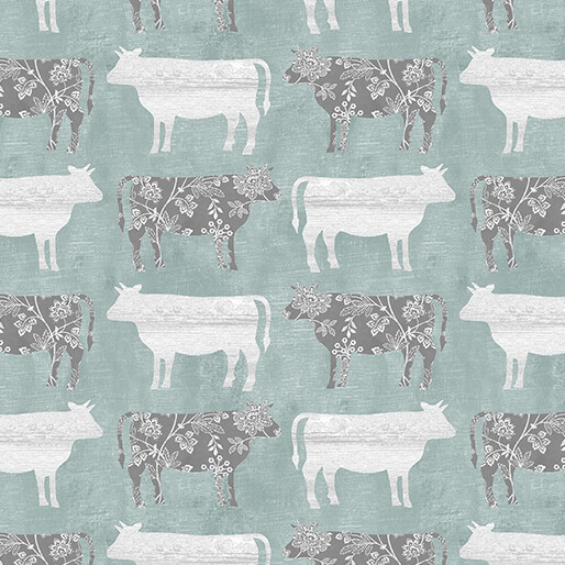 Benartex Chalk Barn Calico Cows Teal