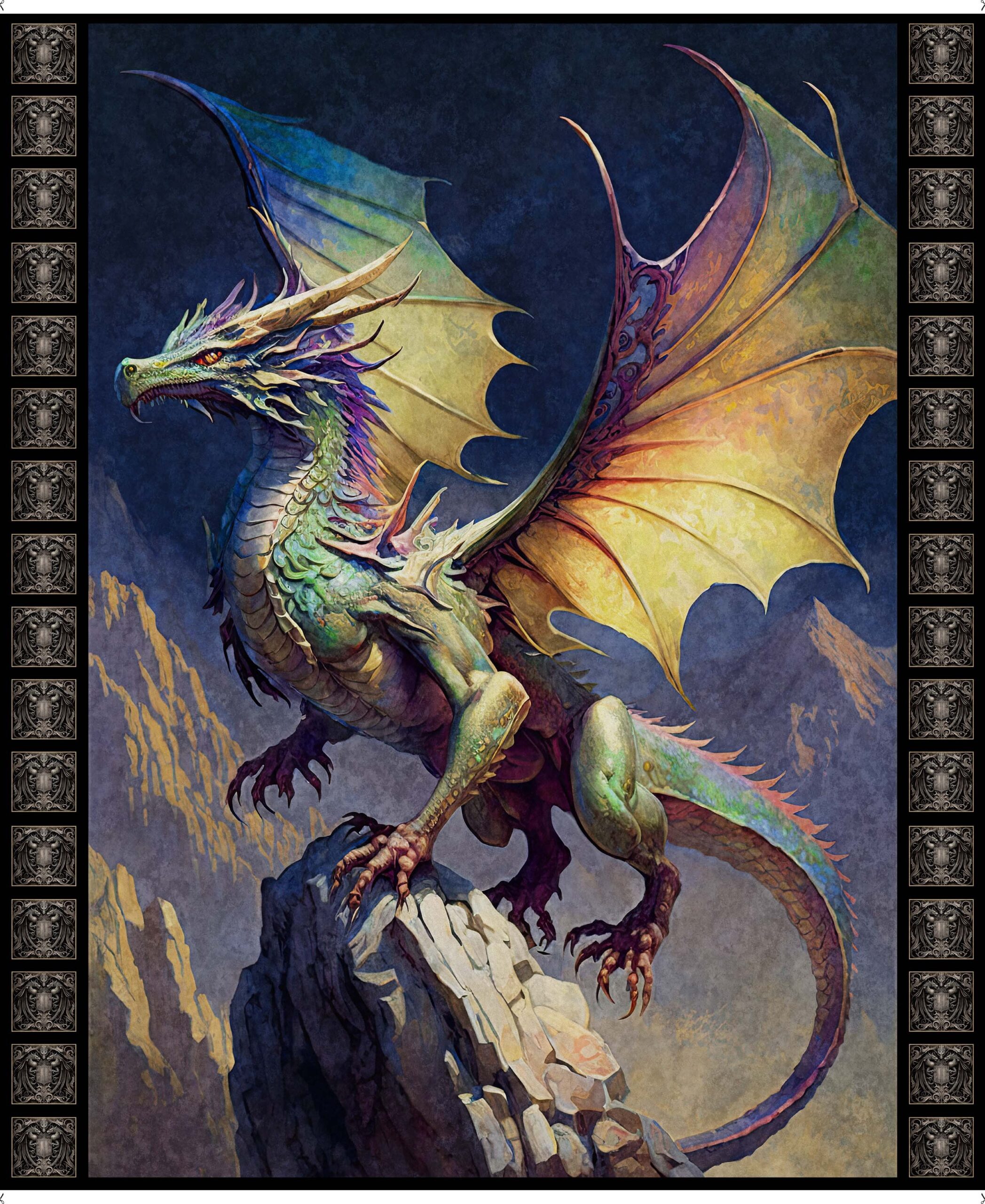 Fantasy comes alive on fabric. A fire breathing dragon is featured on this panel for endless sewing and quilting options. Create a themed quilt, bedroom décor, accessories and apparel with this vibrantly colored, impressive panel.