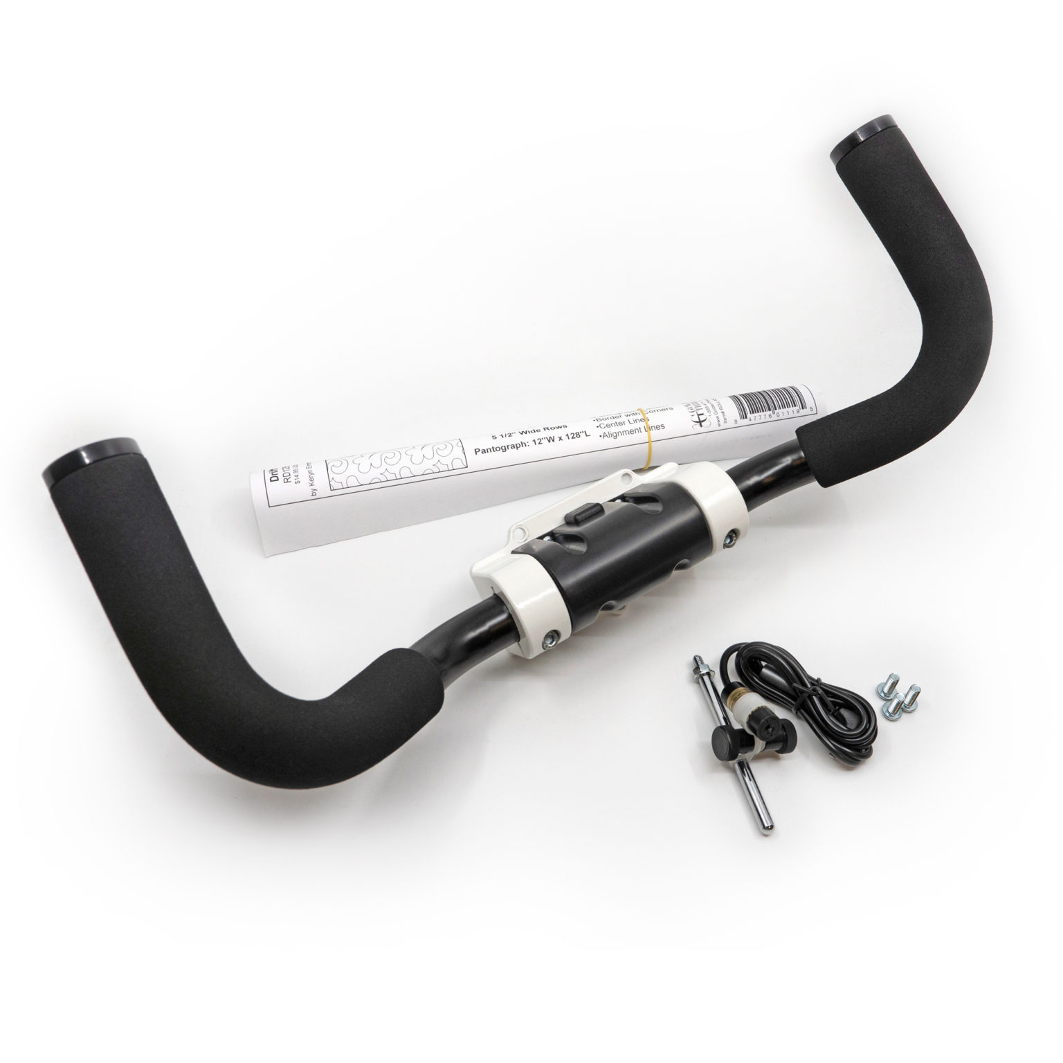 The rear handlebars enable you to quilt from the back of the HQ Moxie or Moxie XL machine. Includes Moxie Rear Handlebars, Laser Light and Adapter, and Sample Pantograph. Requires a Table Top Kit for use with Groovy Board Stylus on The Loft Frame.