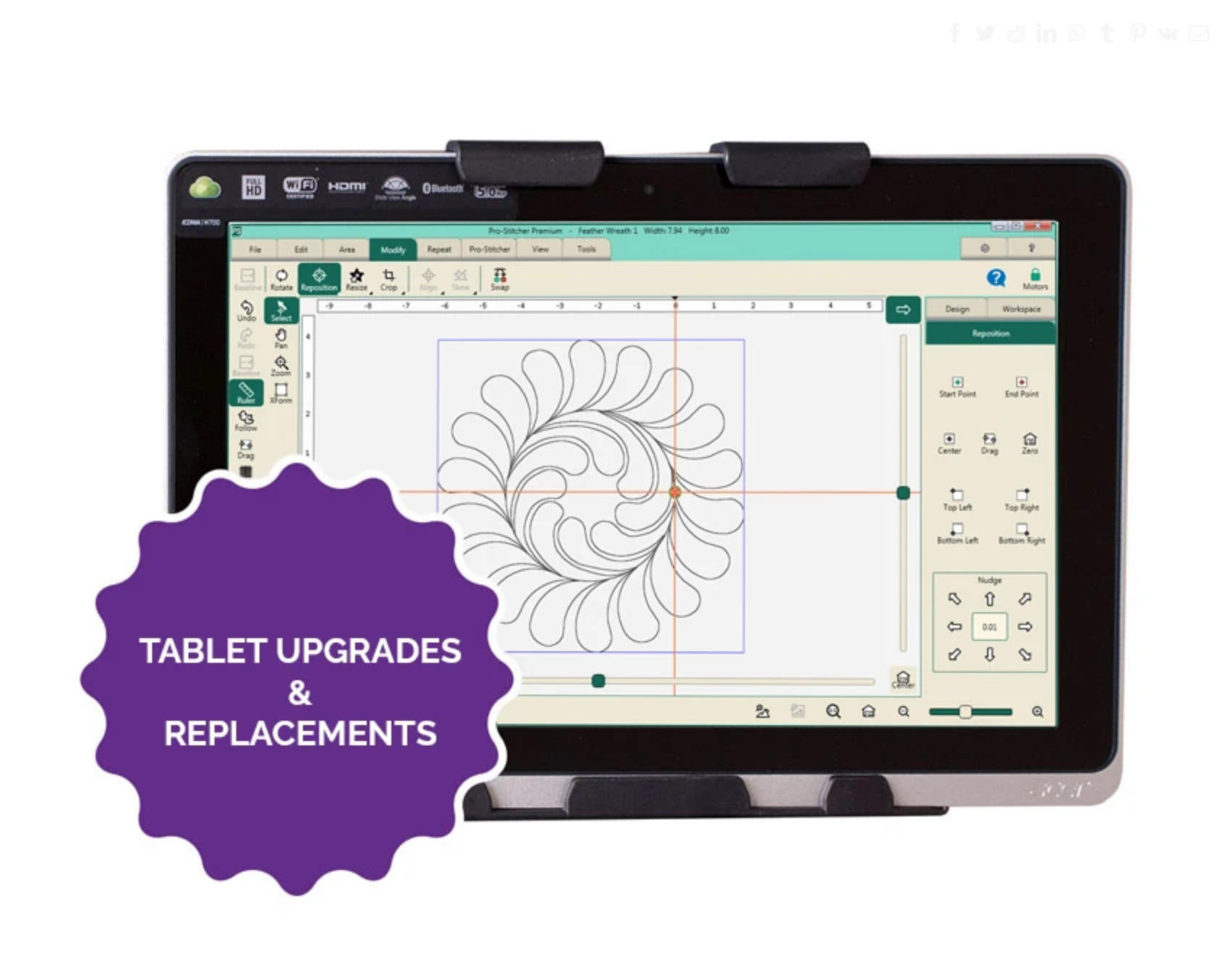 Upgrade or replace your Pro-Stitcher tablet to take advantage of the latest improvements and TONS of new features and tools found in the latest version of Pro-Stitcher Connect, including wireless design file management, dongle-free upgrades and more!