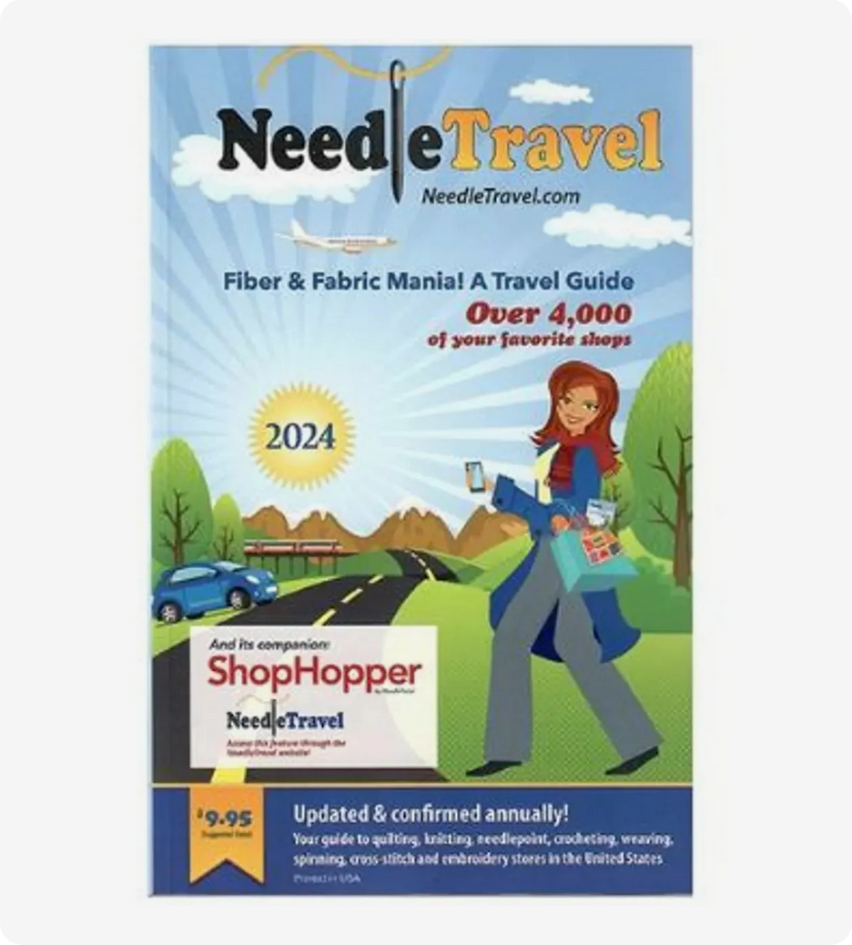 The Ultimate Travel Guide for anyone who loves to quilt, knit, needlepoint, crochet, weave, spin, cross-stitch, and embroider. Now you can find stores anywhere you travel in the US! Includes state maps with detailed listings by city – over 4,000 of your favorite shops listed in one compact book! Makes a great holiday gift!