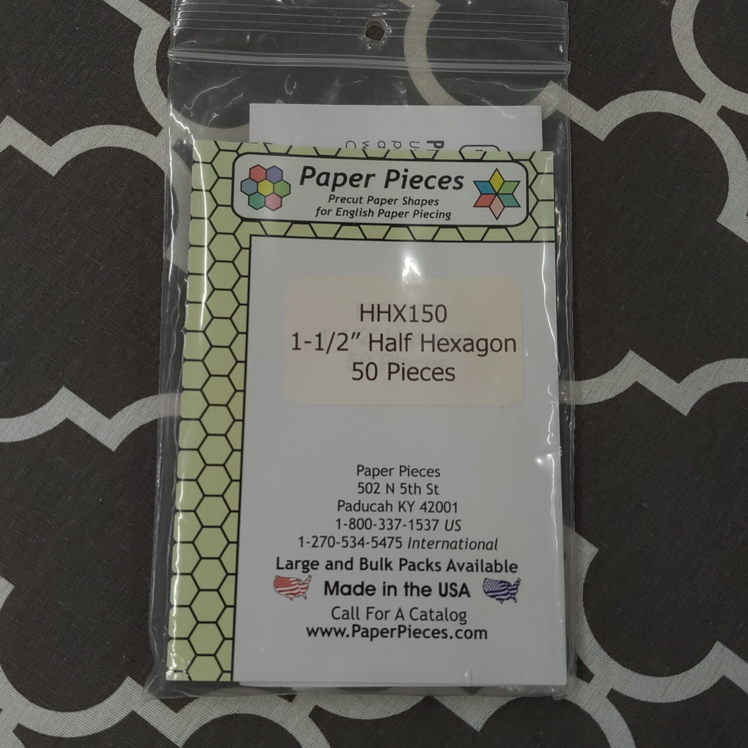 50pcs 1-1/2" Half Hexagon paper pieces. Precut paper shapes for English paper piecing.