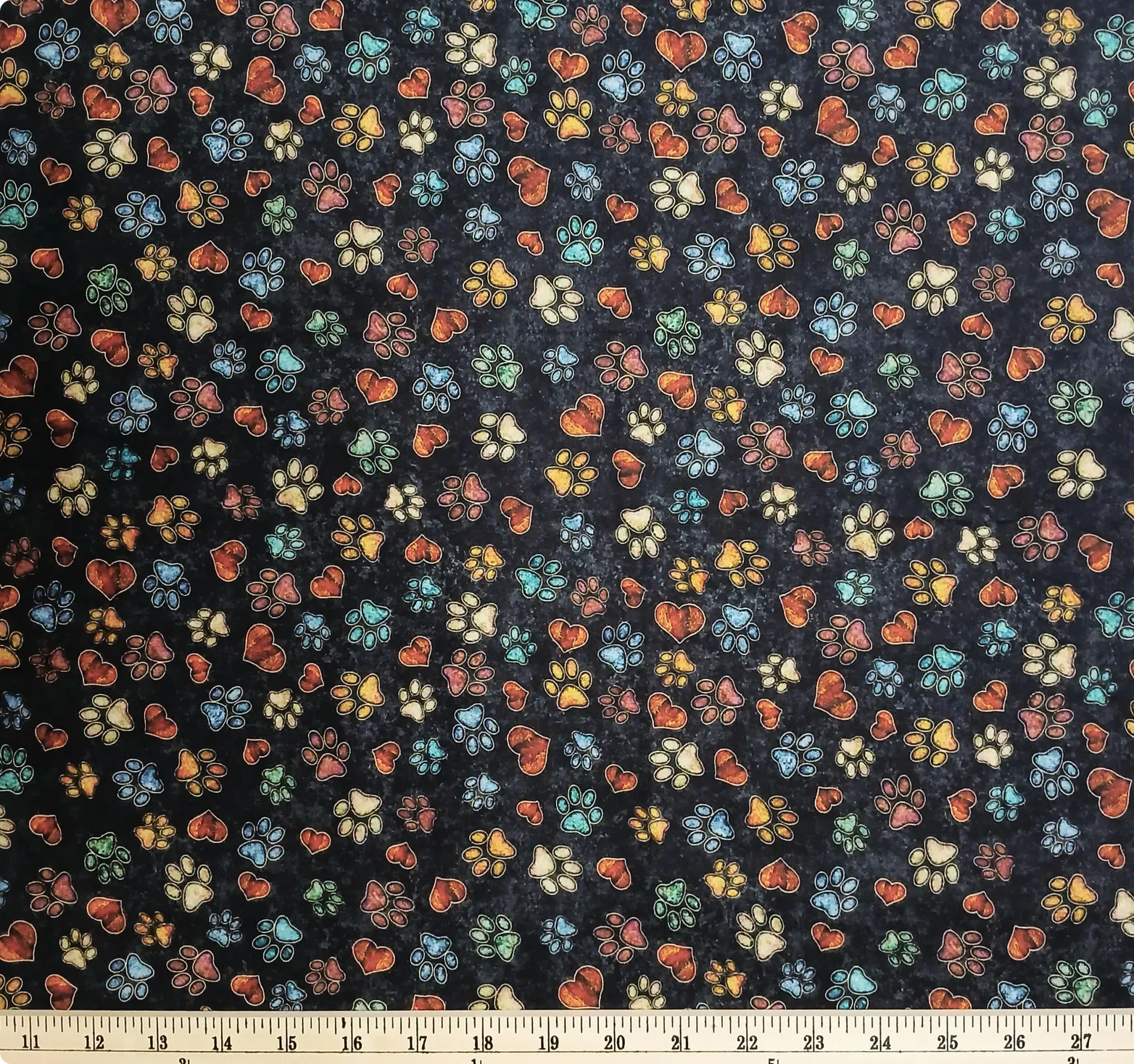 Bring a playful touch to your next sewing project with QT Fabrics' QT Cuties 2 – Puppy Dog Prints. Perfect for pet lovers and creative crafters, this fabric features an adorable array of colorful paw prints and hearts scattered across a warm, cream background. Made from high-quality cotton, it’s ideal for quilting, crafting, or adding a whimsical flair to home decor items. The vibrant hues and charming design make it a delightful choice for creating unique gifts or personalizing your space. Whether you're making a cozy quilt or a fun pillow, this fabric will inspire endless creativity and joy.Excite the cat lover in all of us with a bit of drama and mystery! Our beloved furry friends appear in a generous array of design layouts that are purr-fect for all your kitty inspired projects. Choose from large and small picture patches, a border stripe and colorful coordinates in sophisticated design and vivid color. ©Morris Creative Group