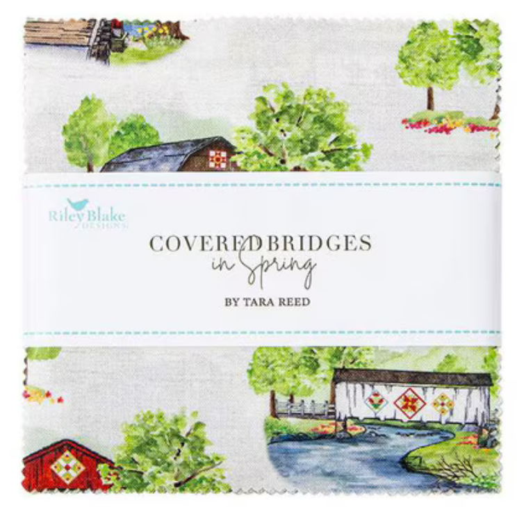 This 5" Stacker precut bundle includes 42 pieces from the Covered Bridges in Spring collection by Tara Reed for Riley Blake Designs. Each print will be included 2-3 times in the bundle.
