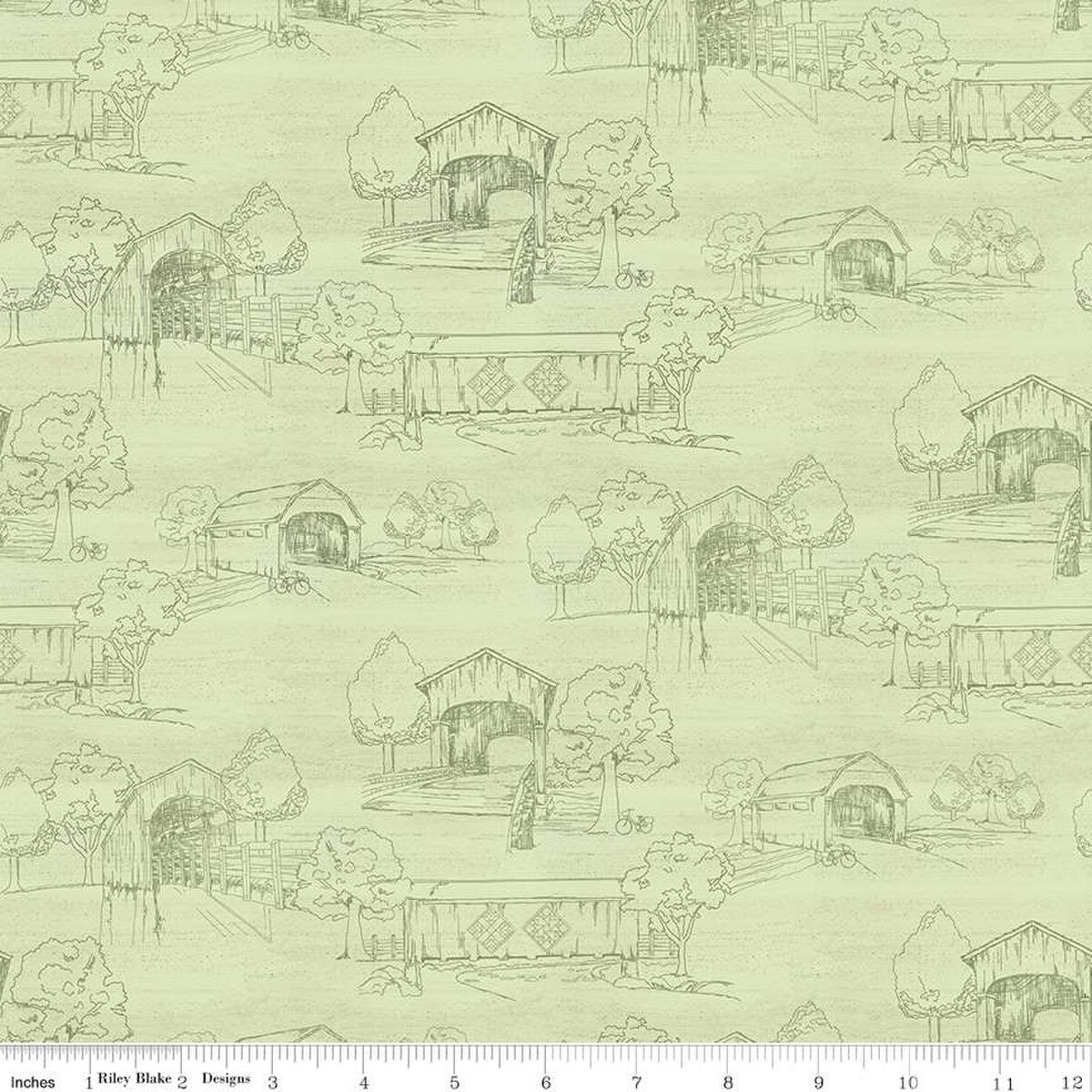 Covered Bridges in Spring by Tara Reed for Riley Blake Designs is great for quilting, apparel and home decor. This print features tone-on-tone covered bridge scenery.